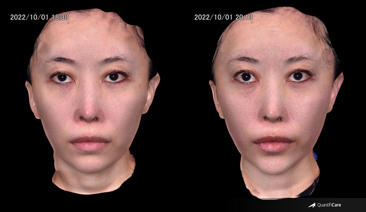 ボルハイフ、ボルニューマ照射前後には、3Dカメラを使用し効果測定を実施。実施後の引き上げの数値などを確認することが可能です。