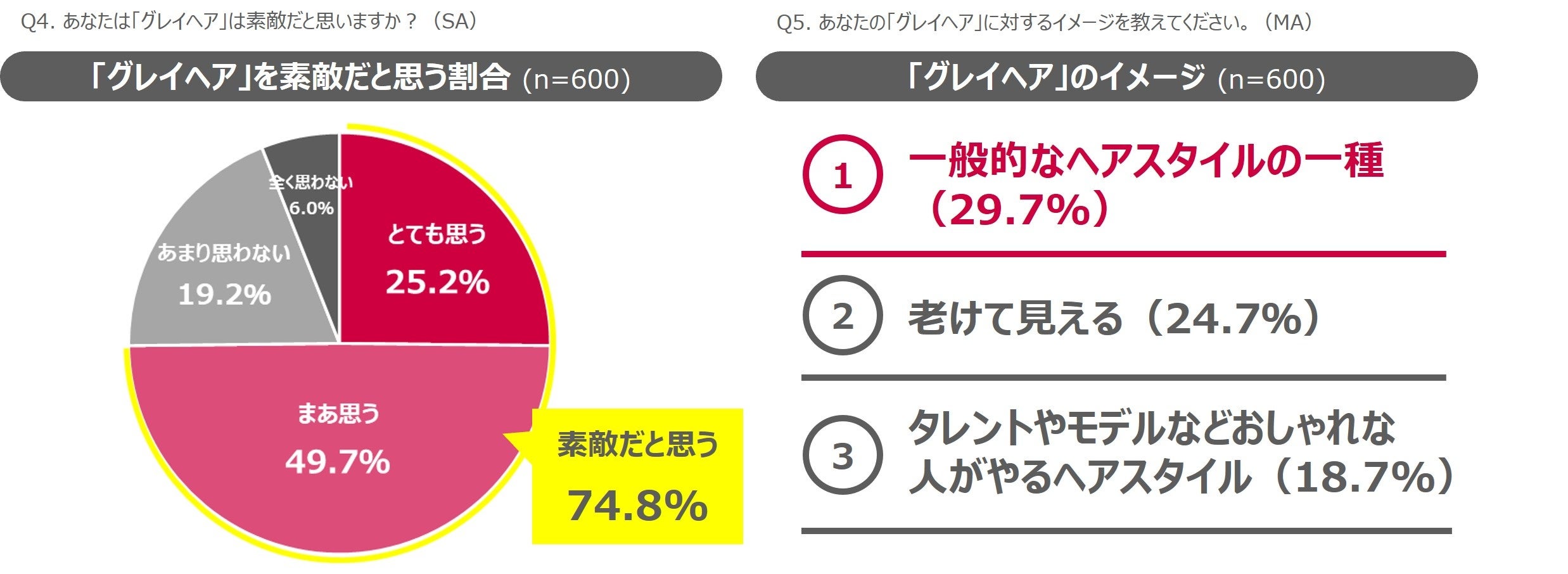 ✔ 「グレイヘア」の好感度:「(グレイヘアは)素敵だと思う」74.8%