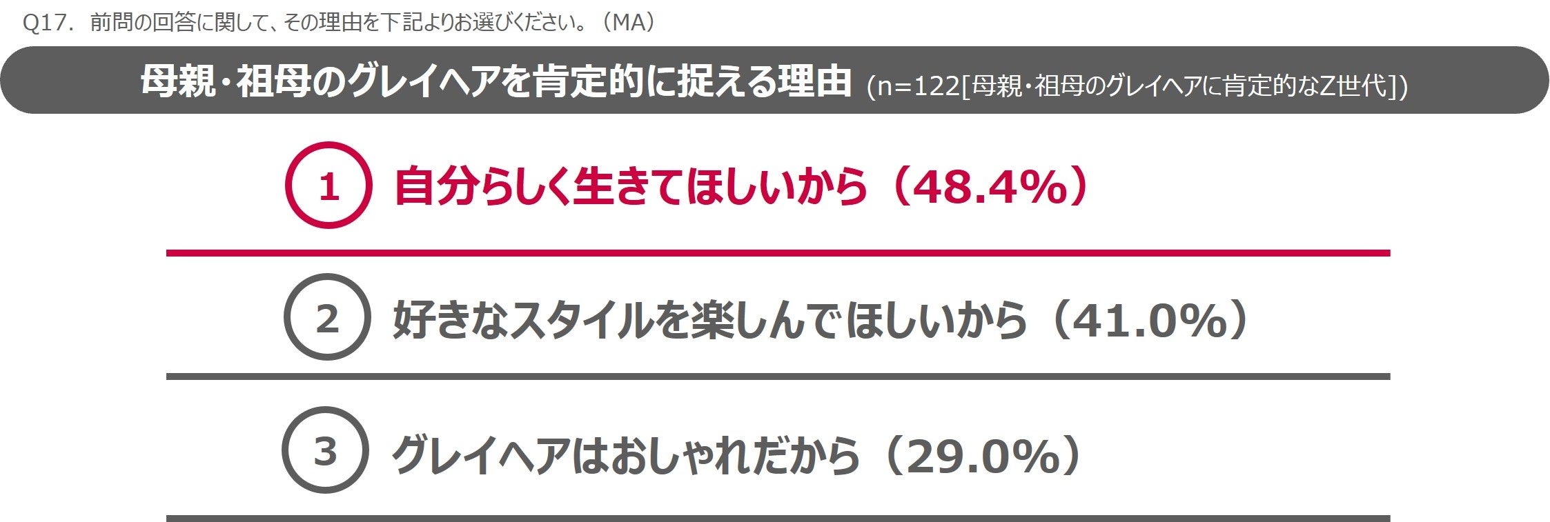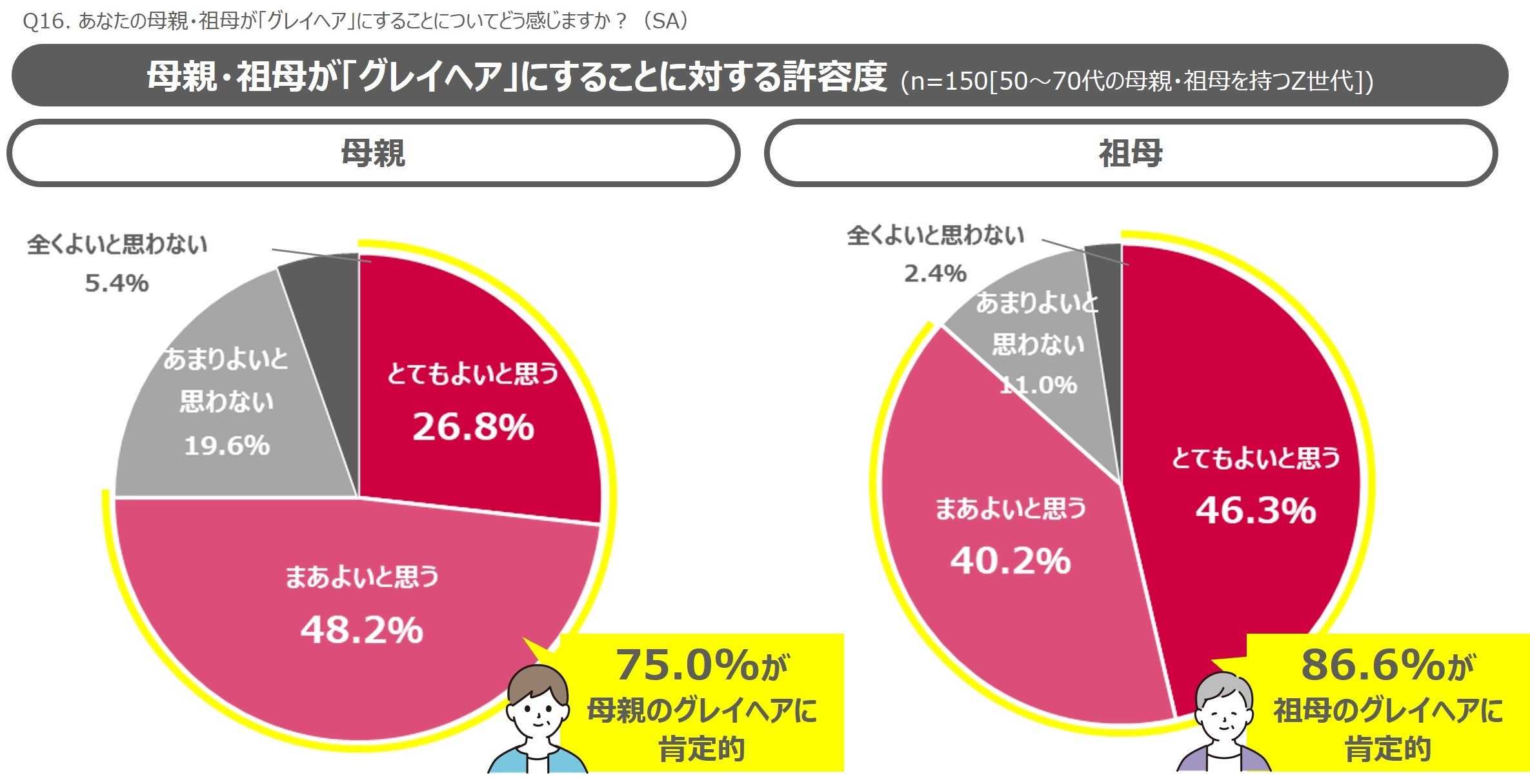 - 【TOPIC❹-4】Z世代は母親・祖母の「グレイヘア」に7割以上が肯定的、「自分らしく生きてほしい」