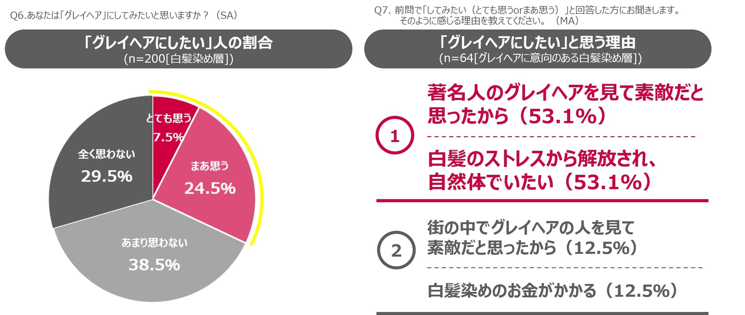 ・対象者 :「白髪染めをしている」「グレイヘアにしている」と回答した50代~70代女性 各200人