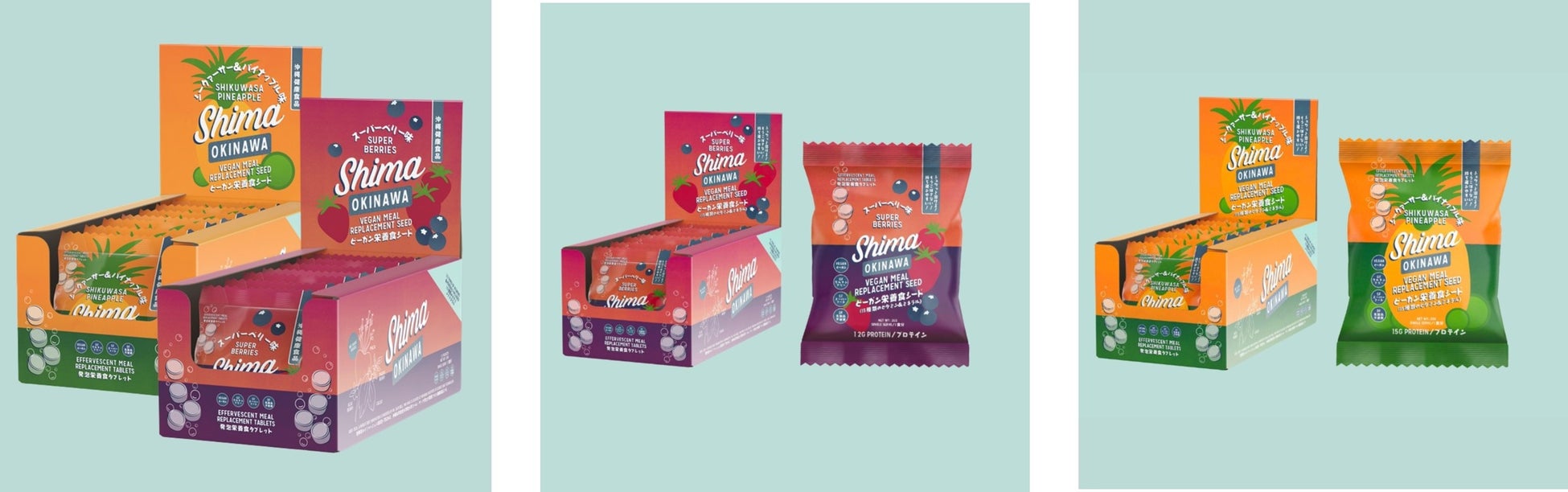 Shima & Co. 株式会社(以下Shima& Co.)は本日、プロテインとスーパーフードなどの粉末を固形にしたビーガン・プロテインシードの『Shima Okinawa』をMakuake、及びb8ta 店舗での取り扱いを開始いたします。