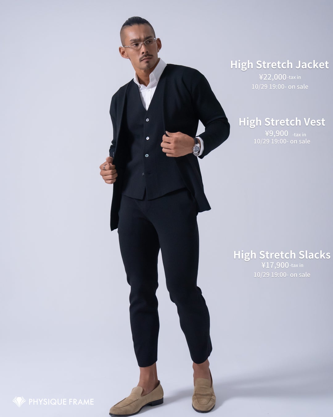 抜群のストレッチ性により快適に着られるニット生地を、鍛えた肉体を美しく見せるために考え抜かれたデザインパターンに沿って作り込んだ今回の新作セットアップ。正直、自信作です。