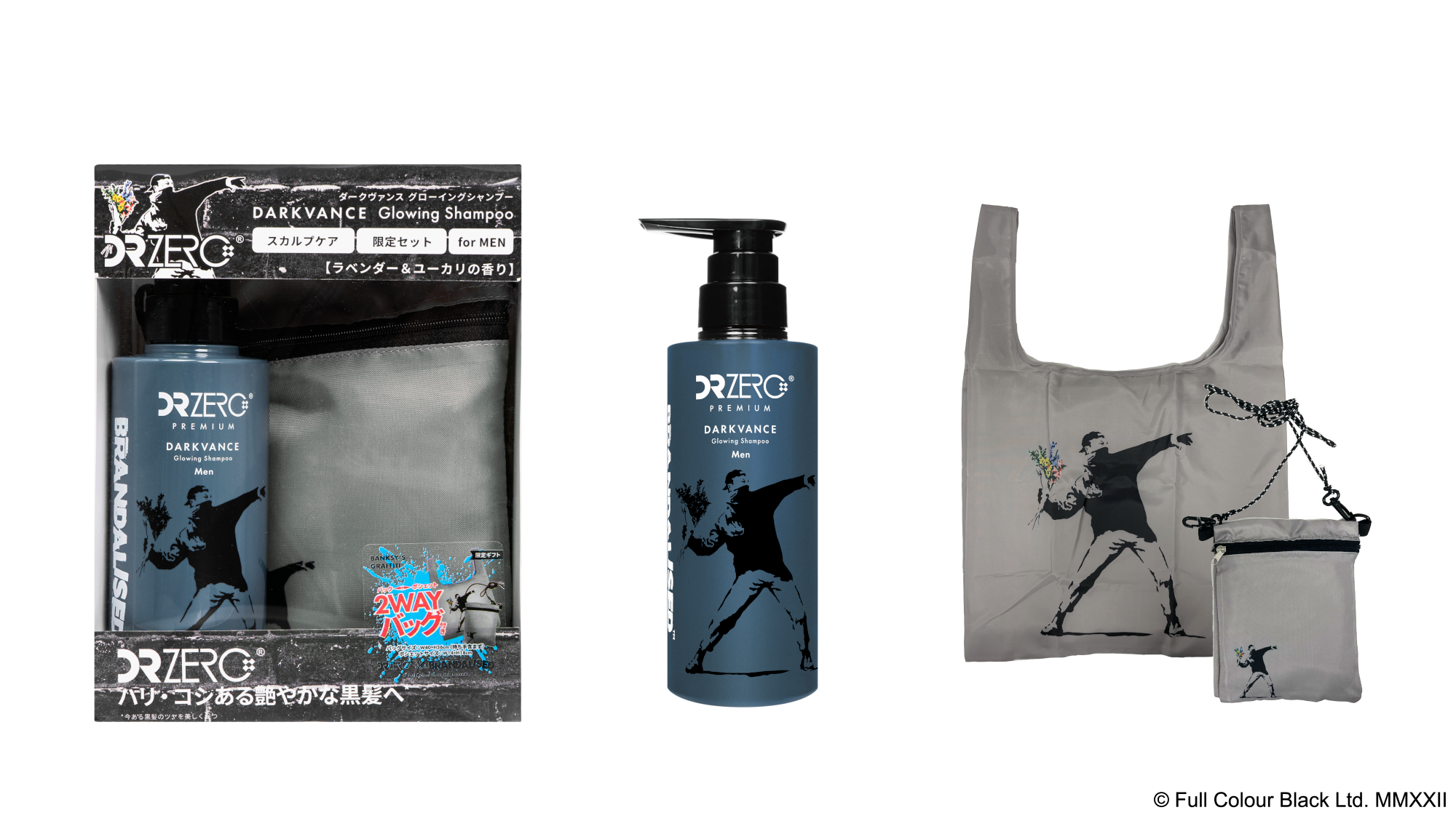 EWI Lab 株式会社(本社:東京都新宿区四谷、代表取締役:谷川 元英)は、同社ヘアケアブランド「DR ZERO(ドクターゼロ)」の、「DARKVANCE(ダークヴァンス)シリーズ」から、ロンドンを中心に活動する正体不明のアーティストBanksy(バンクシー)」のグラフィティフォトを扱う「BRANDALISED(ブランダライズド)」とのコラボレーションボトルシャンプー&2WAYバッグ(シャンプーキャリーバック)セットを数量限定で、2022年11月22日(火)より発売します。