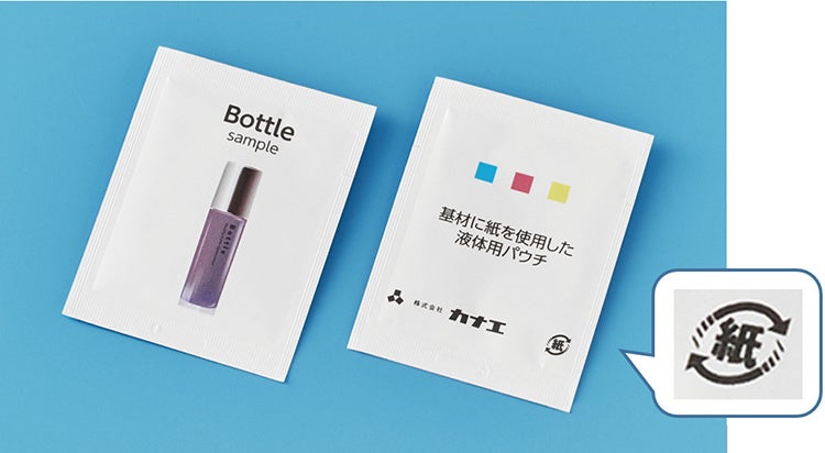 表層のプラスチック基材を紙基材に代替し、バリア性など高機能性は保ちつつ、プラスチック使用量を削減できるパッケージ
