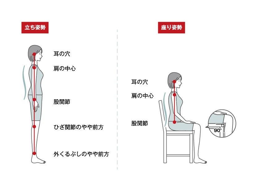 耳・肩・腰・膝・くるぶしが一直線になっている状態のことを指し、