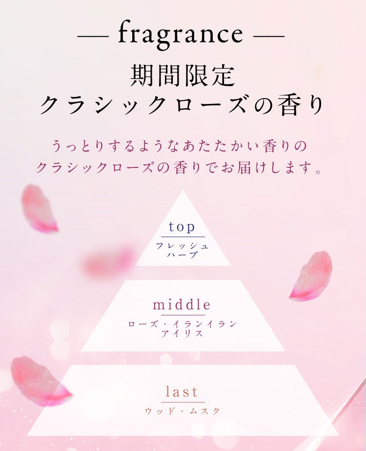 - 限定の香り【クラシックローズ】で高級感のある癒やしの時間を