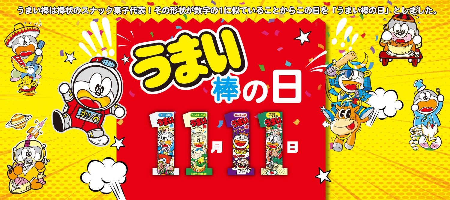1979年に発売を開始したうまい棒が、2019年で発売40周年を迎えたことを記念し制定されました。うまい棒は棒状のスナック菓子代表であり、その形状が数字の“1”に似ている事から11月11日を記念日としています。