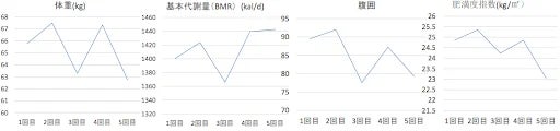 体重・体脂肪・BMIに関して、投与後にはほぼすべての方で減少傾向が見られました。徐脂肪量や基礎代謝率に関しては明らかな変化は見られませんでした。