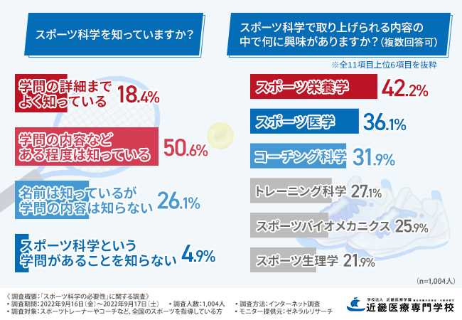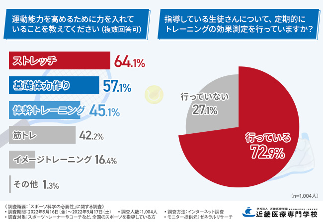 学校法人近畿医療学園(本社所在地:大阪府大阪市、理事長:小林 英健)は、全国のスポーツトレーナーやコーチなど、スポーツを指導している方を対象に、「スポーツ科学の必要性」に関する調査を実施しました。