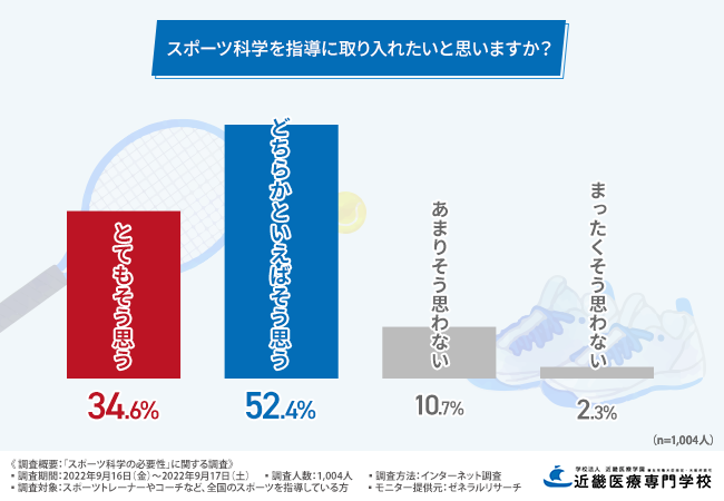 そこで今回、学校法人近畿医療学園 近畿医療専門学校(https://kinkiisen.ac.jp)は、全国のスポーツトレーナーやコーチなど、スポーツを指導している方を対象に、「スポーツ科学の必要性」に関する調査を実施しました。