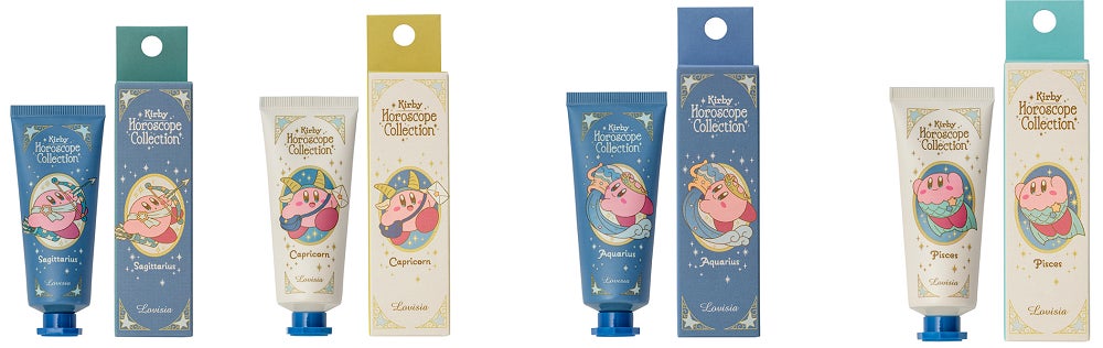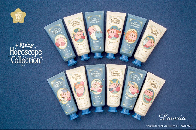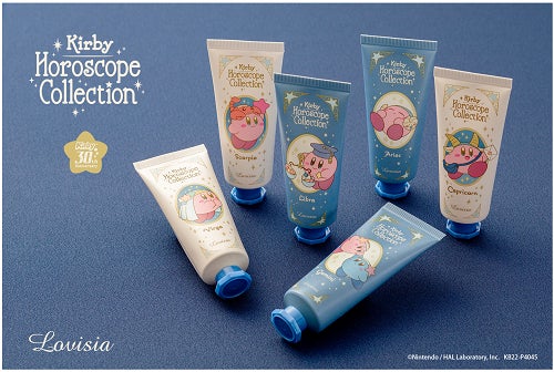 「Lovisia KIRBYホロスコープ ハンドクリーム 」は12星座に扮したカービィのデザイン「KIRBY ホロスコープ・コレクション」があしらわれたハンドクリームです。保湿成分としてフラワーエキス4種(センチフォリアバラ花エキス、ヒマワリ種子油、アロエベラ葉エキス、カミツレ花エキス)に加え、コラーゲン、ヒアルロン酸、、ワセリン、ミネラルオイルを配合し、手肌をしっとりと潤します。