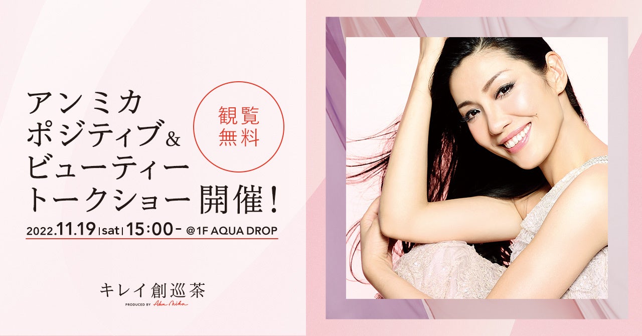 株式会社アイセイ薬局(本社:東京都千代田区、代表取締役社長:藤井江美)は、女性の悩みに寄り添う和漢茶『キレイ創巡茶』初のポップアップストアオープンを記念し、プロデューサーであるアン ミカ氏によるトークショーを2022年11月19日(土)グランツリー武蔵小杉にて開催いたします。常にポジティブで美しいアン ミカ氏のココロとカラダの美の秘訣など、ここでしか聞けないスペシャルトークをお楽しみください!