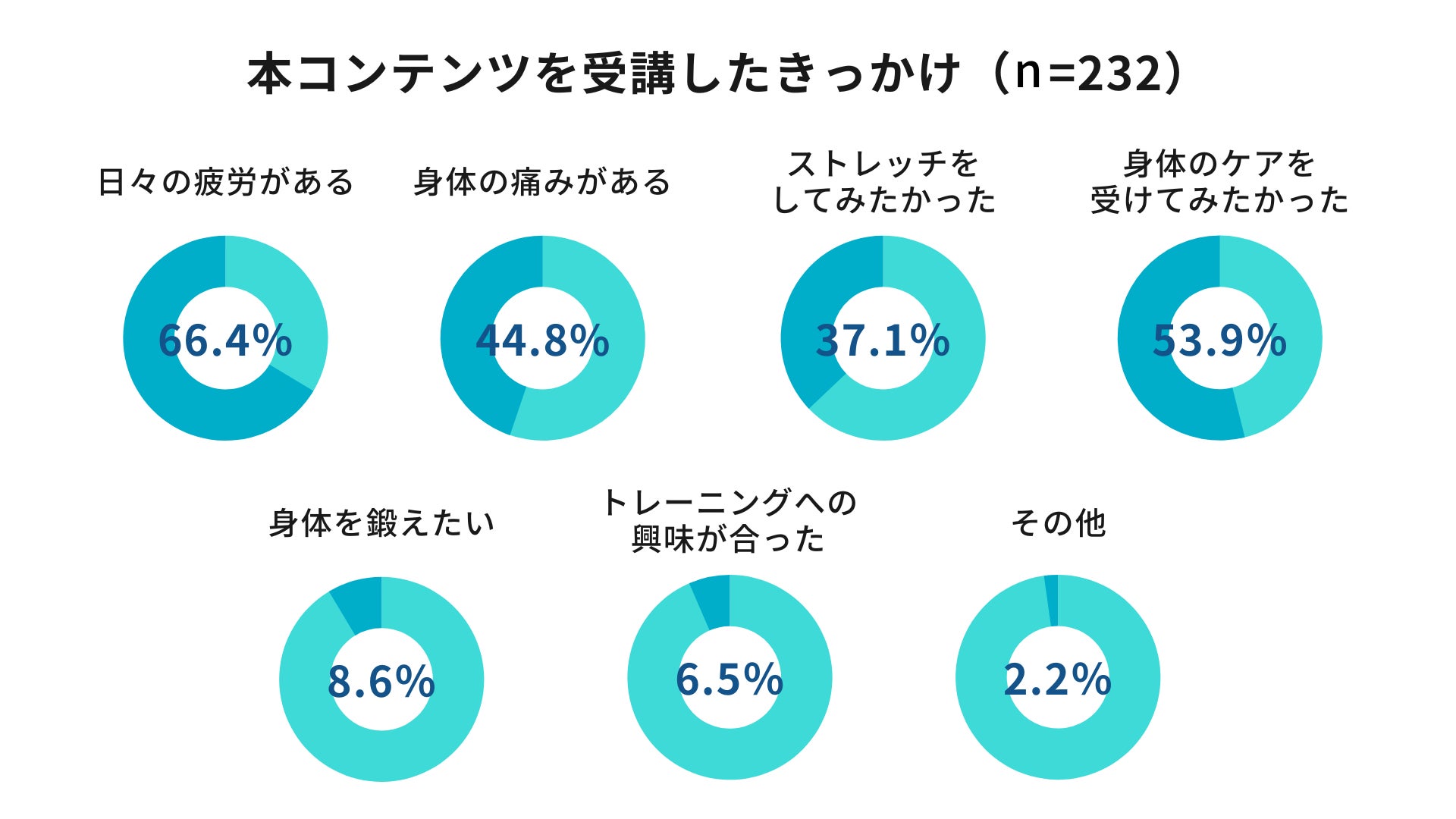 「からだの保健室」を体験していただいた皆さんにアンケートを実施。プログラム体験のきっかけとして、実際に疲労や身体の痛みを自覚している方が多くいることが判りました。