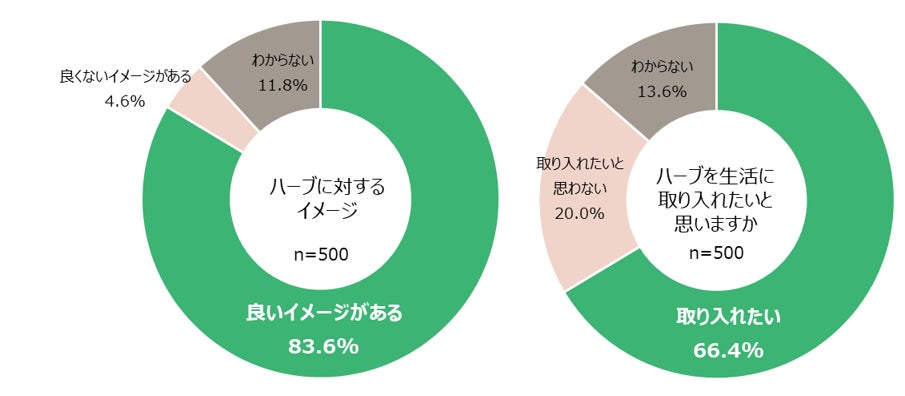 • 日本人女性の8割以上がハーブに対して「良いイメージ」を持ち、6割以上が「生活に取り入れたい」と回答