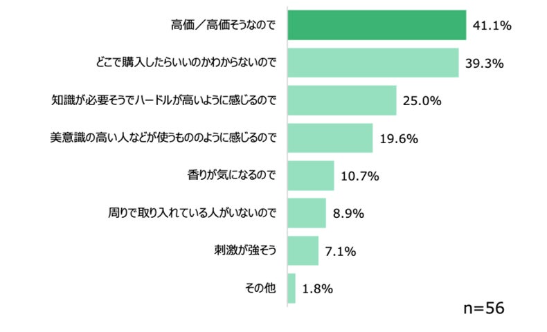 スキンケアやボディケアにハーブを取り入れない理由第一位「高価/高価そう(41.1%)」
