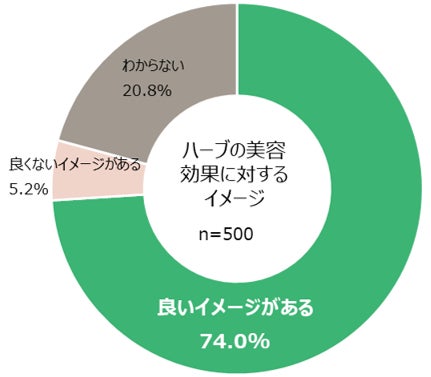 • 「ハーブ」の美容効果に対して、約4分の3が良い印象を持っている