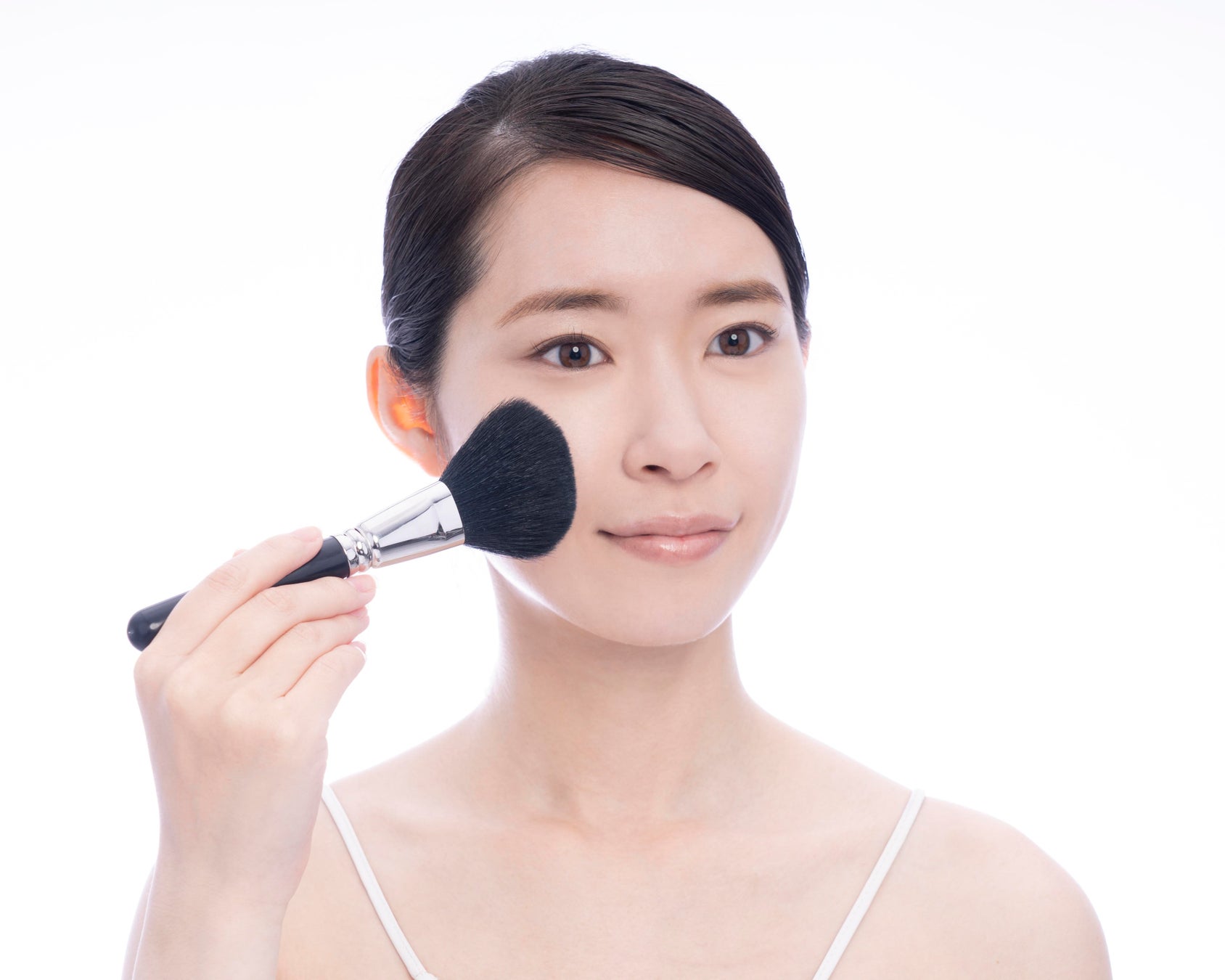 より密着感を高めたいときはブラシ使いを。ブラシの毛先が肌の凹凸に入り込みしっかりパウダーをのせることができます。大きめのパウダーブラシなどにたっぷり含ませ、肌を磨き上げるようにくるくる馴染ませて。