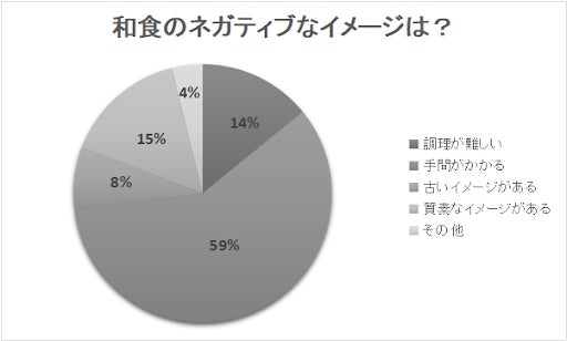 他にも、「質素なイメージがある」が15%、「調理が難しい」が14%、「古いイメージがある」が8%という結果になっています。