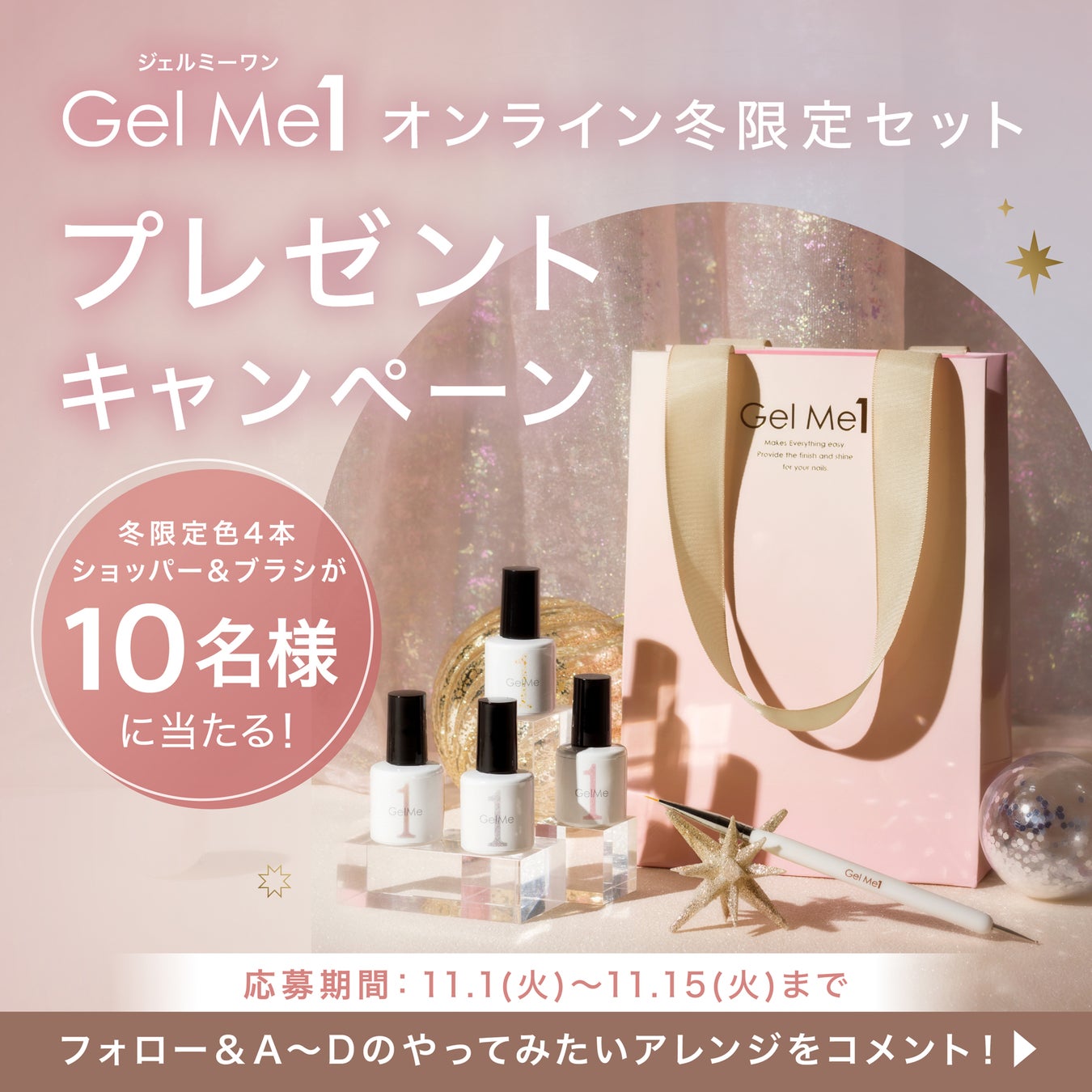 ジェルミーワン公式インスタグラム(@gelme1)では11月1(火)~11月15(火)までの期間中 冬の限定色全4色とノベルティをセットにしたホリデーキャンペーンを開催中。