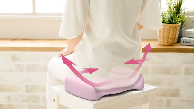 - 座るだけで両サイドから骨盤まわりをギュッと引き締めてホールドする小尻&骨盤ケアクッション!