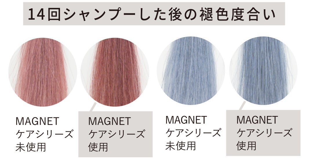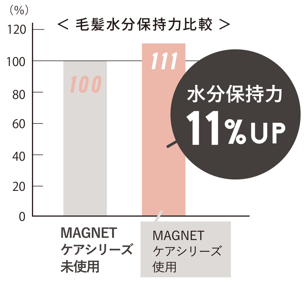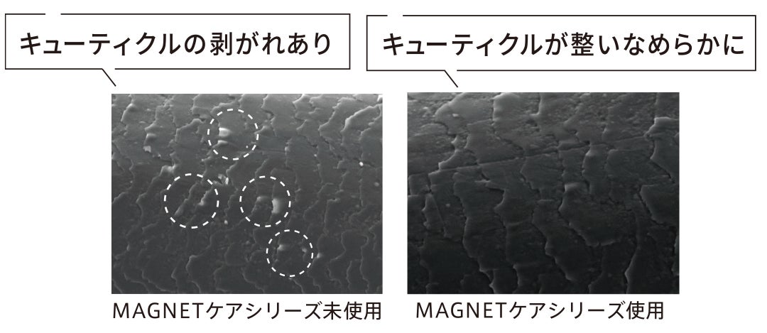 *MAGNETケアシリーズ未使用とMAGNETケアシリーズ使用での比較データは同一人物の毛髪で計測