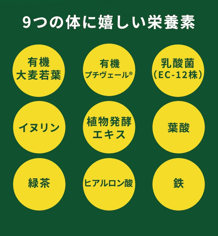 腸内のビフィズス菌による発酵・増殖に利用され、腸内フローラを良くするイヌリンを配合。また、胃酸や胆汁、熱に強く腸まで届けることができる乳酸菌(EC-12)を1包で約100億個配合しています。