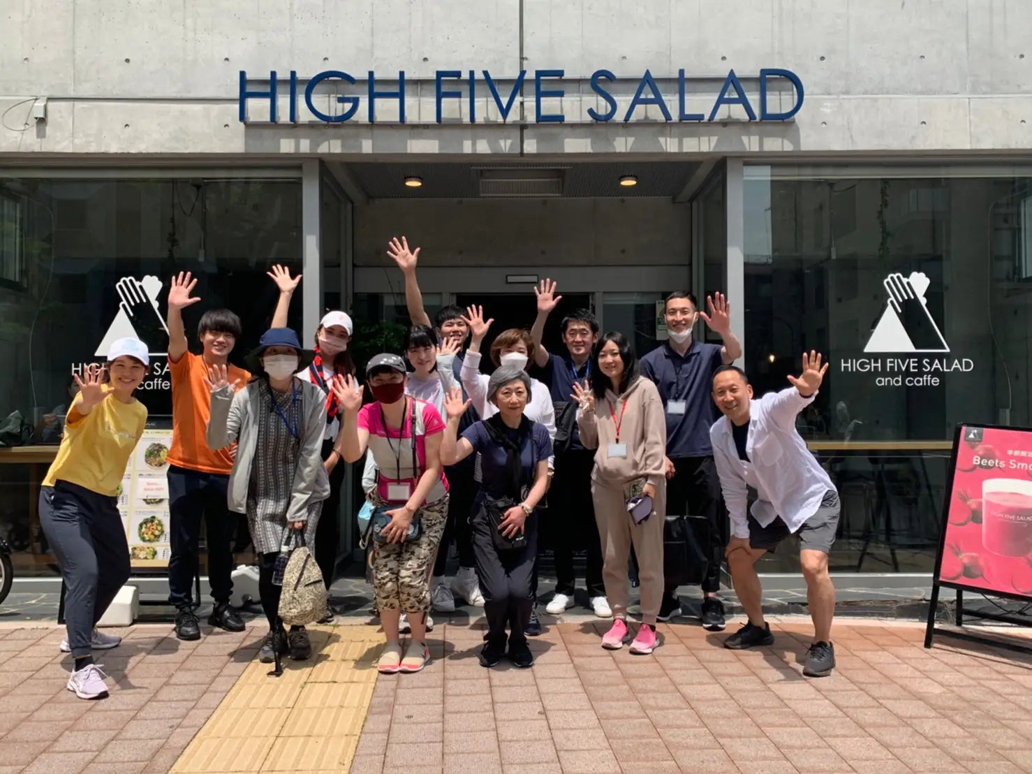 ウォーキングの後はHIGH FIVE SALADで参加者全員でサラダランチを食べました。