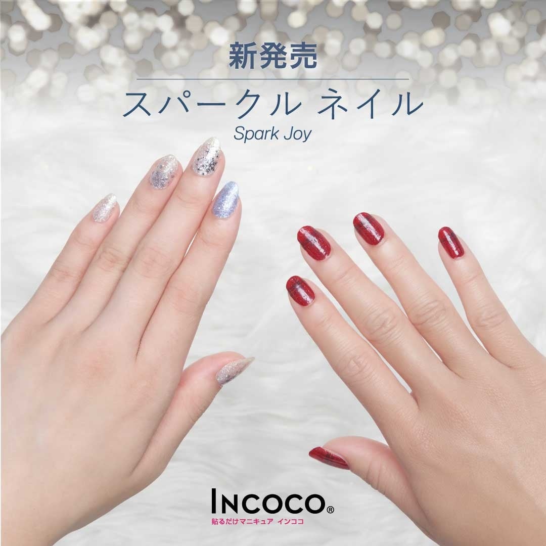 ベースコートもトップコートもUVライトも要らない、落す時は除光液でオフ。液体マニキュアからできた貼るだけのマニキュアシート「インココ」は、11月9日(水)に 2022 ウィンター コレクション「スパークル ネイル ~Spark Joy~」を数量限定で発売致します。https://incoco.jp/product-category/collections/spark-joy/