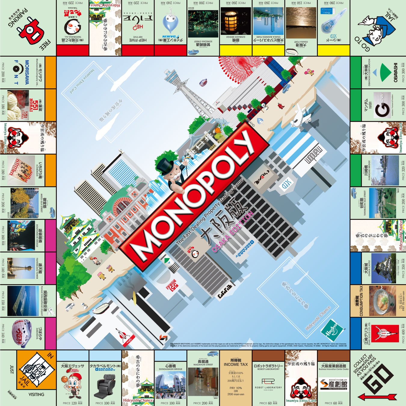 世界には「ご当地モノポリー」が数多く存在し、日本で本格的な都道府県版モノポリーとしてはじめて登場したのは、「秋田県版モノポリー」。2番目に作られたのがこの「大阪版モノポリー」です。