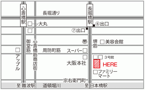 大阪メトロ堺筋線「長堀橋駅」7番出口より徒歩3分