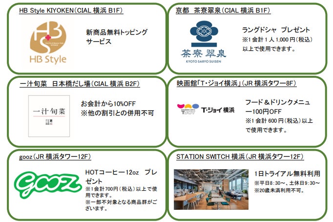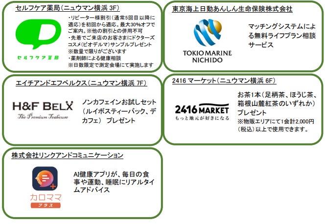 健康測定後のアンケートに回答された方には、JR横浜駅周辺の協力店舗で割引を受けられるクーポンを発行します。