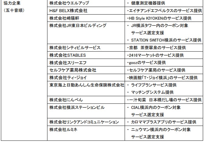 ※協力企業・協力店舗および受けられるサービス一覧については別紙を参照ください。