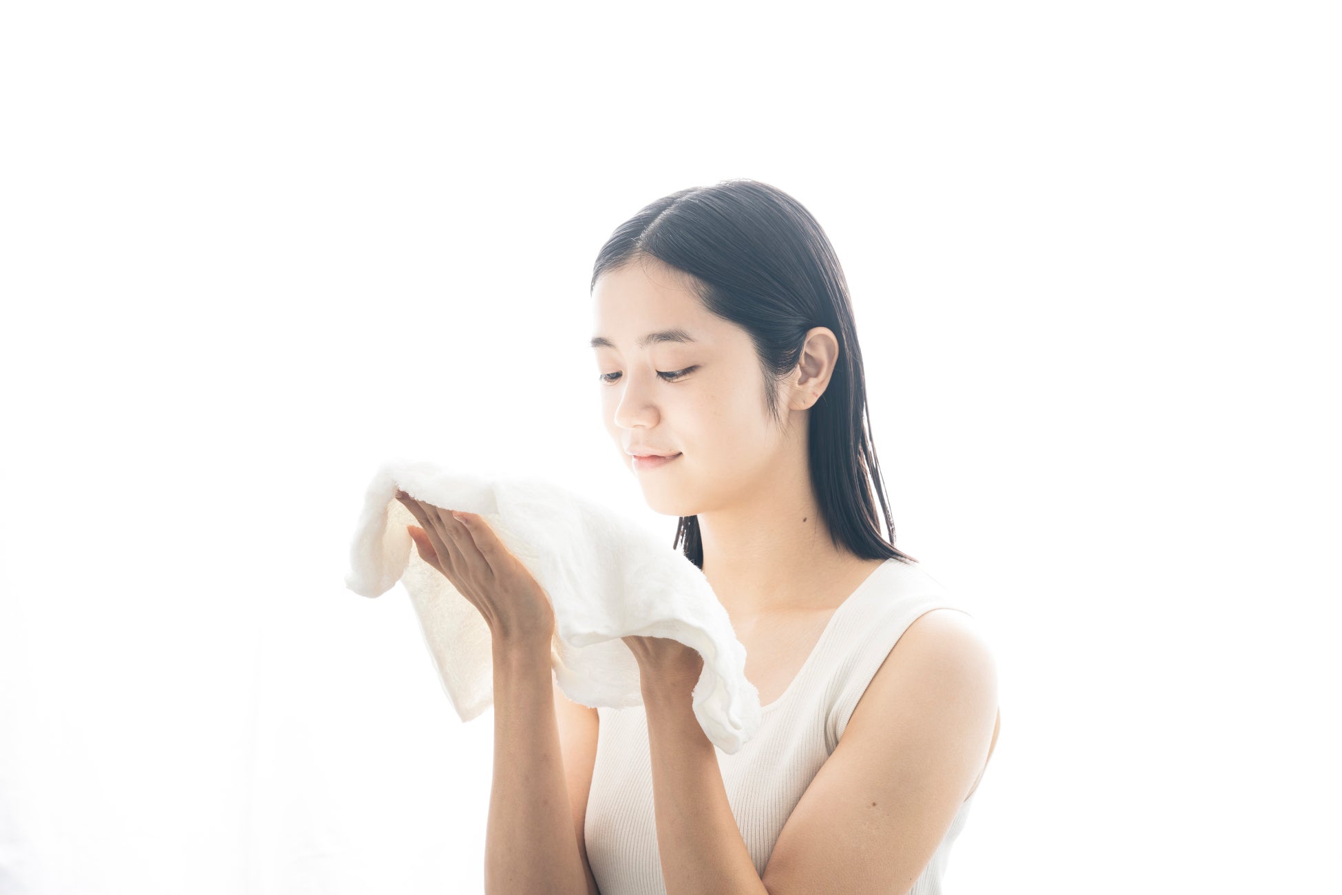 メイク落としやマッサージのあとに蒸しタオルをすると、肌の血行がよくなり新陳代謝がアップ。毛穴に詰まった汚れも取れやすくなります。気持ち良いと感じるくらいの温度(約60度)の蒸しタオルを顔にあててよく蒸らし、やさしく拭き取ってください。タオルは厚手のものがおすすめです。じんわりとした温かさに気分がほぐれ、リラックス効果も期待できます。