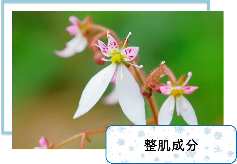 古くから和漢植物として親しまれ、深い愛情、恋心などの花言葉を持つユキノシタを美容成分に。雪の下に咲いていても枯れないその強い生命力が、肌にハリとツヤを与えます。