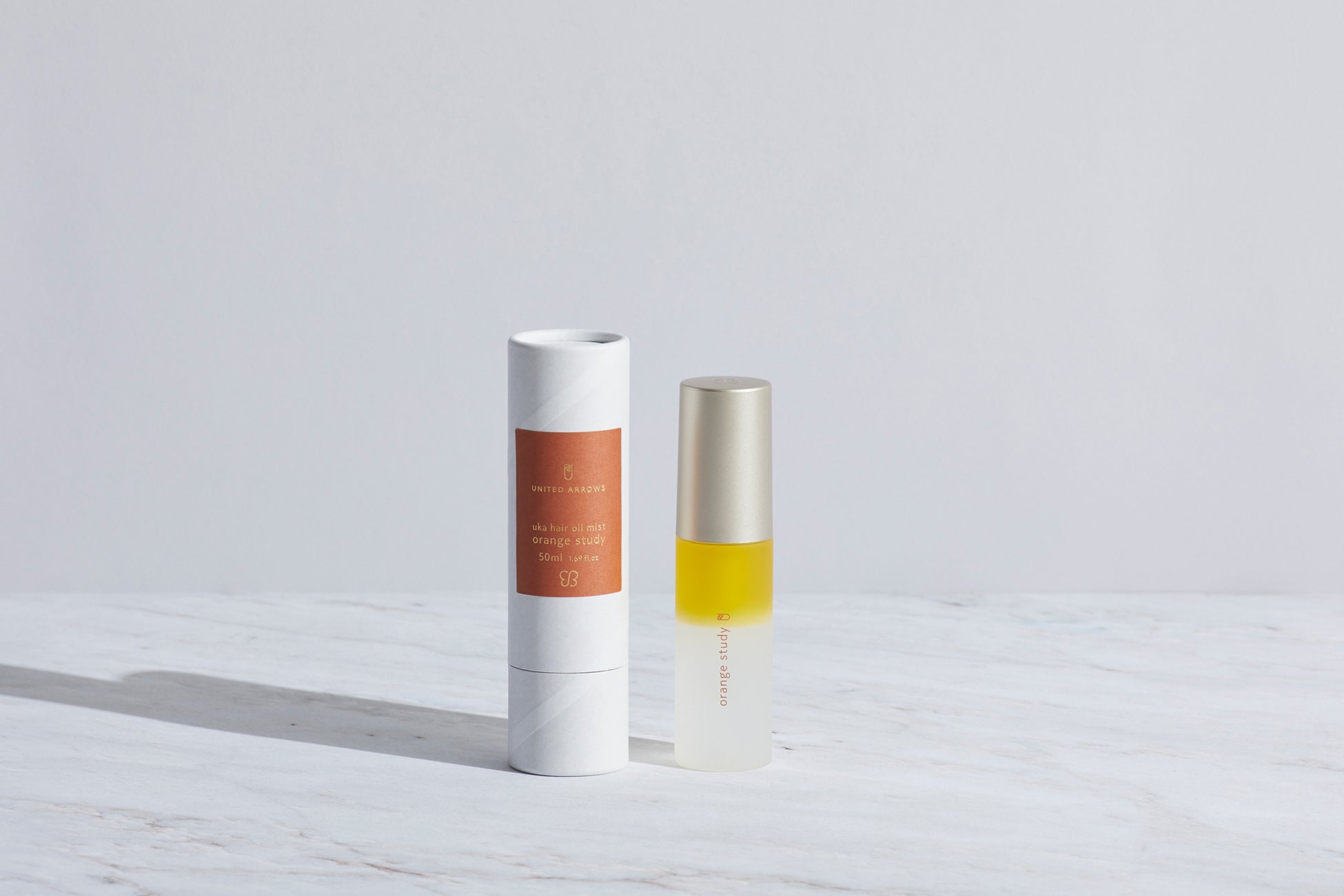誰の肌も美しく昇華させる色の研究である uka の study シリーズ。ユナイテッドアローズのブランドカラーである“UA TAN”から着想を得たコラボレーションです。今回は、色での表現ではなくブランドカラーの研究として、studyシリーズ初となるヘアオイルを発売いたします。