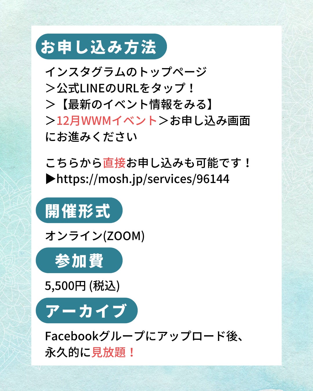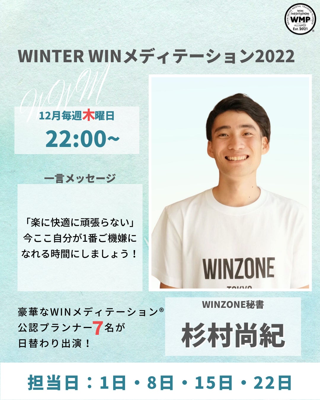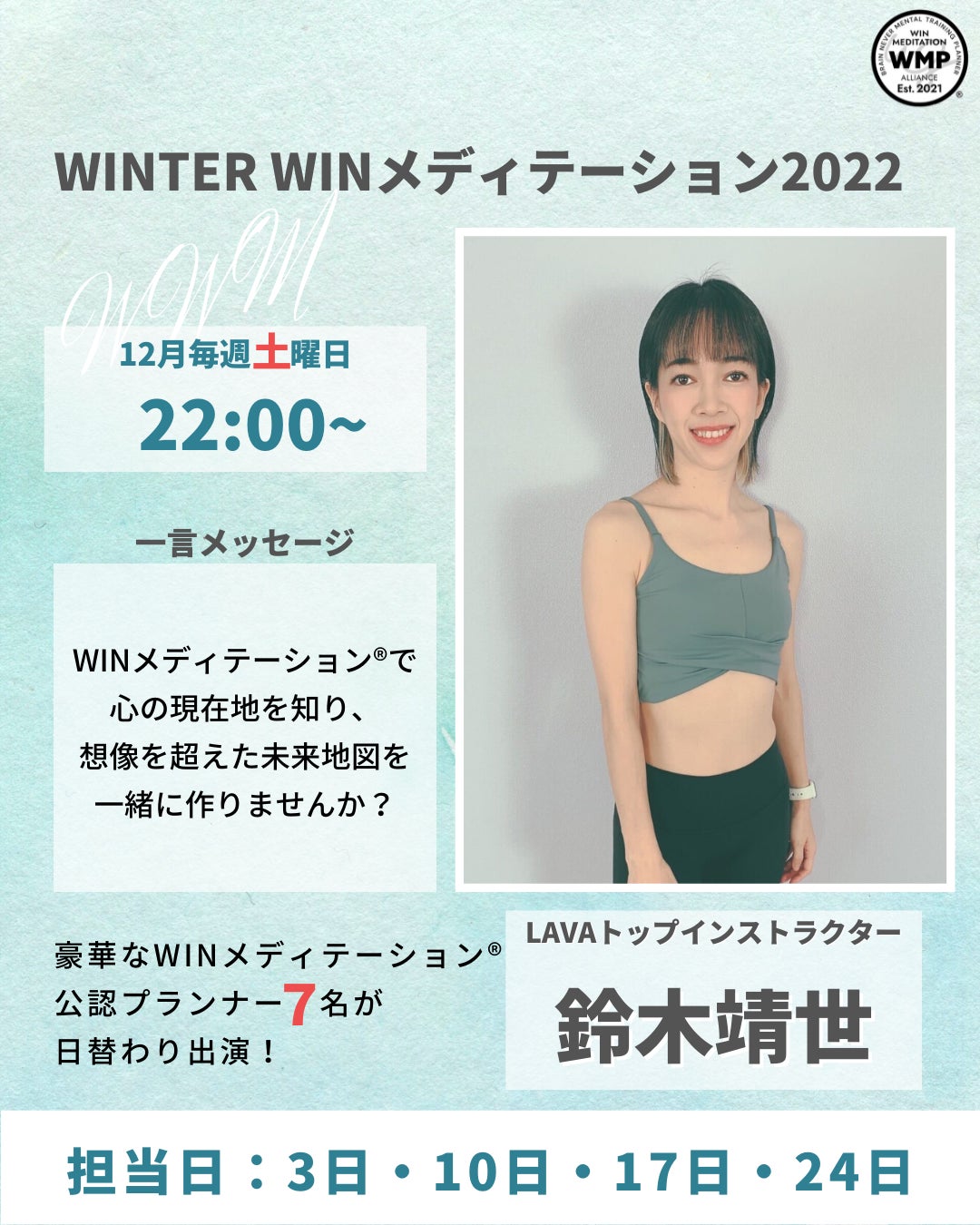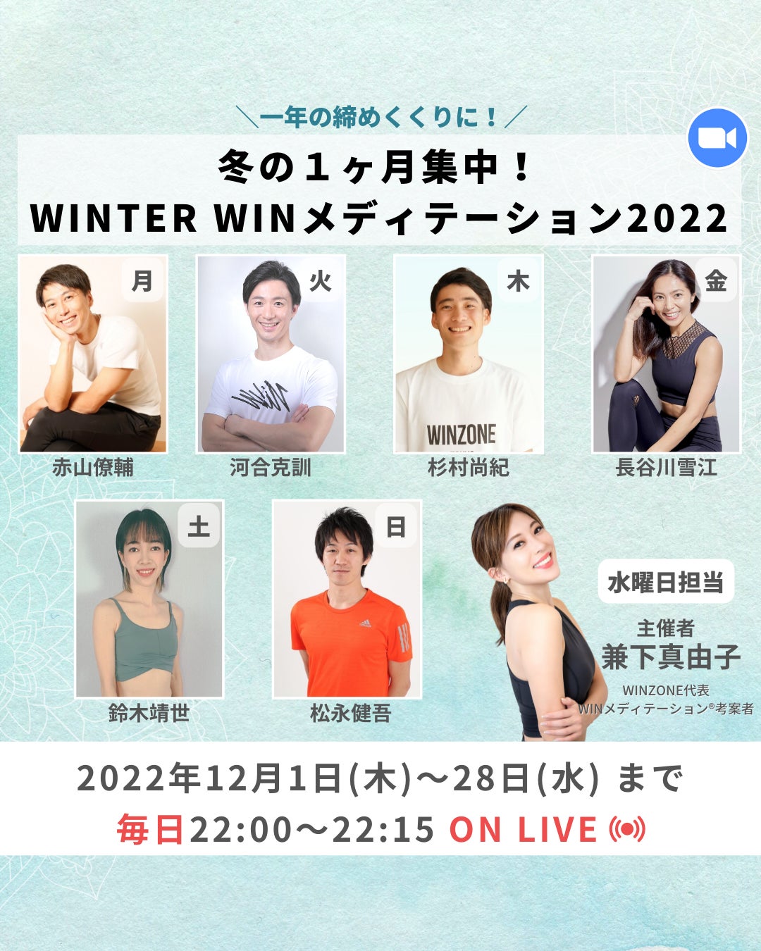 株式会社WINZONE(代表取締役:兼下真由子 本社:東京都渋谷区)は、豪華なWINメディテーション®︎公認プランナーが日替わり出演する、【WWM】ウィンターウィンメディテーション2022 の受講者を募集しております。