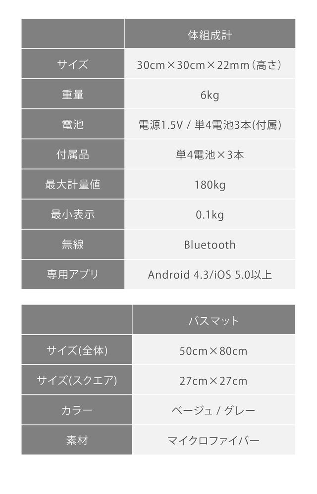 WeighMatsは「バスマット・体組成計・体重推移の記録」の3つがセットになった製品です。