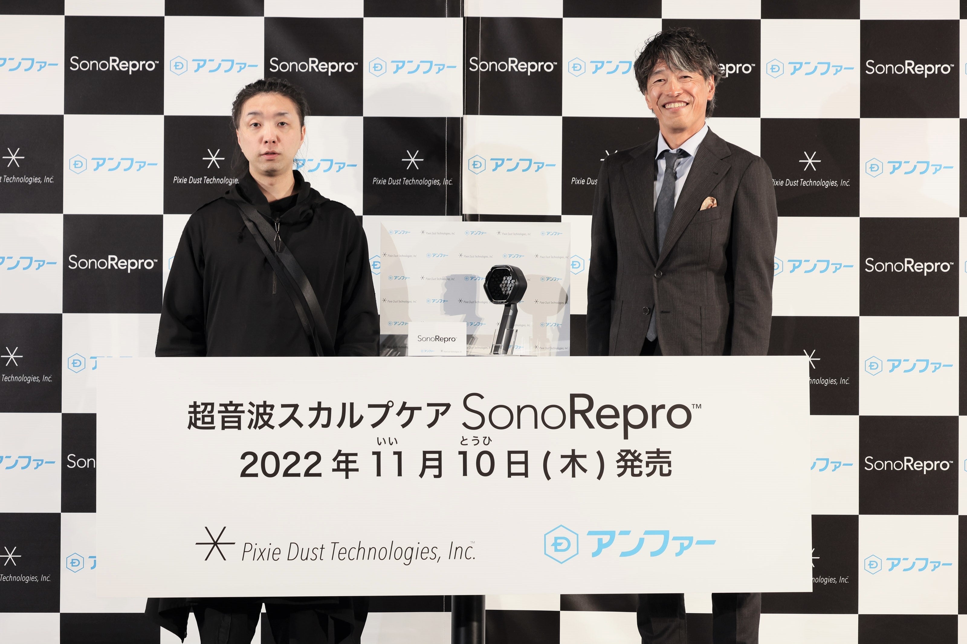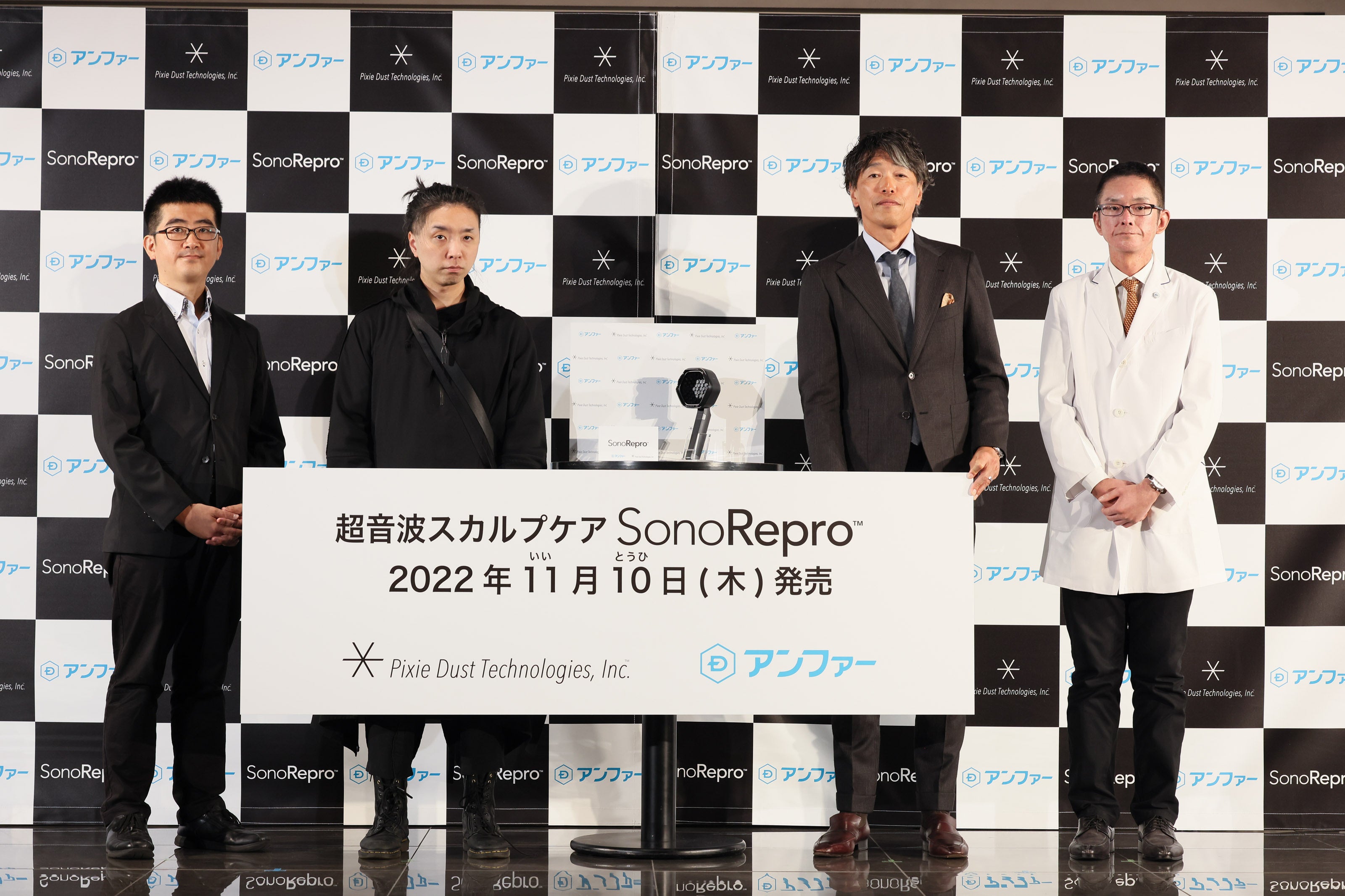 アンファー株式会社(本社:東京都千代田区、代表取締役 叶屋宏一、以下「アンファー」)はピクシーダストテクノロジーズ株式会社本社:東京都千代田区、代表取締役 落合陽一、村上泰一郎、以下「PxDT」)と共に日本初の“超音波研究”から生まれたホームケア用のスカルプケアデバイス“SonoRepro™(ソノリプロ)”を開発し、11月10日(木)に発売いたします(https://scalp-d.angfa-store.jp/brand/sonorepro/)。その発売を記念して「SonoRepro™合同発表会」を開催いたしました。