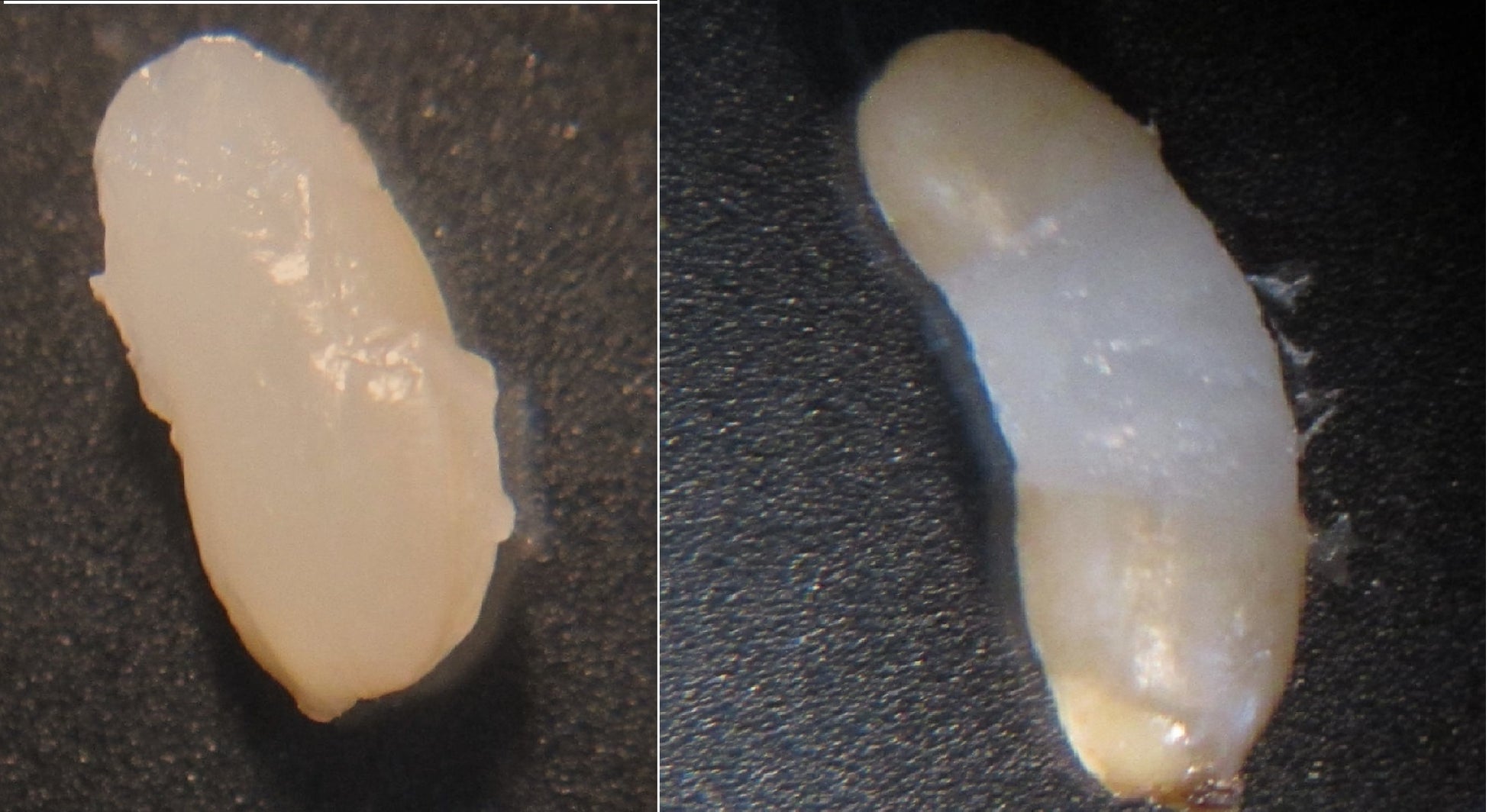 写真右:「ハイ・ゲンキの故郷」のご飯粒。皮が裂けて、柔らかい
