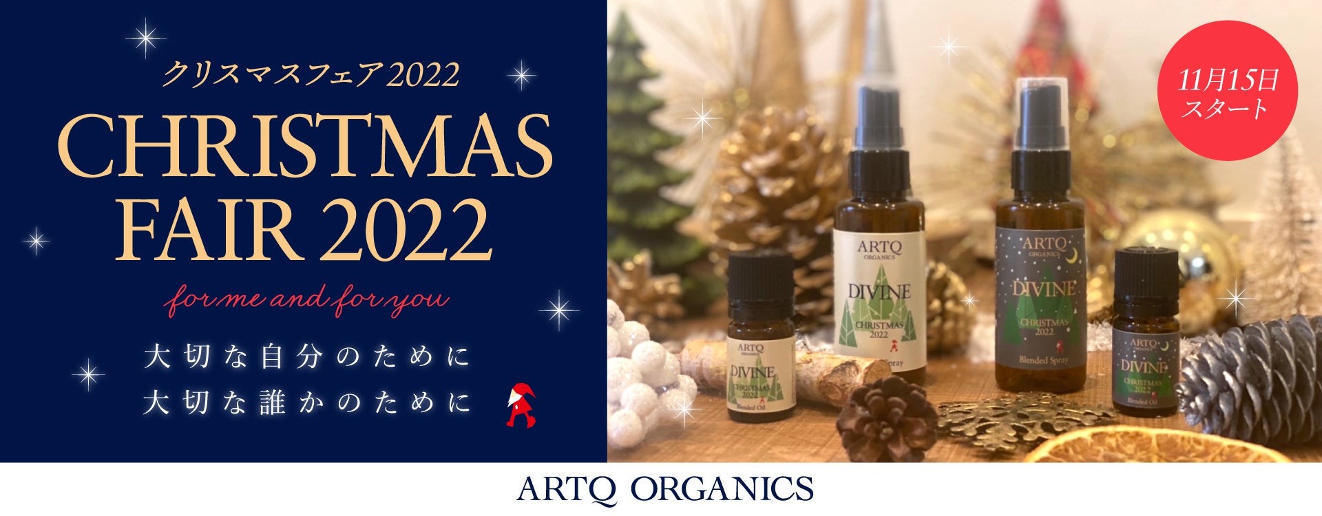 株式会社 Blue ink(本社:青森県青森市、代表取締役社長:アネルズあづさ)は、ARTQ ORGANICS(アロマティーク オーガニクス)にて、2022年11月15日(火)より『CHRISTMAS FAIR 2022』を、公式オンラインと直営ショップにて開催いたします。