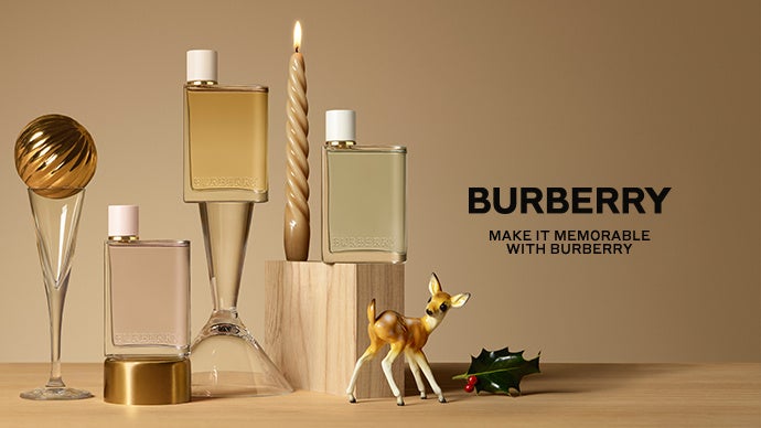 大胆で冒険心あふれるロンドン女性をイメージしたフルーティ フローラルの香りで人気のフレグランス 「バーバリー ハー オードパルファム」 のギフトセット。 太陽の恵みをたっぷりうけた3種のベリーとジャスミン、ヴァイオレットの芳醇な花々がアンバーやムスクと溶け合い、ホリデーシーズンを華やかに彩ります。フレグランス現品(50mL)と同じ香りで日本未発売のボディローション(75mL)が、シルバーとゴールドのモノグラムが描かれたラグジュアリーなギフトボックスにセットされています。