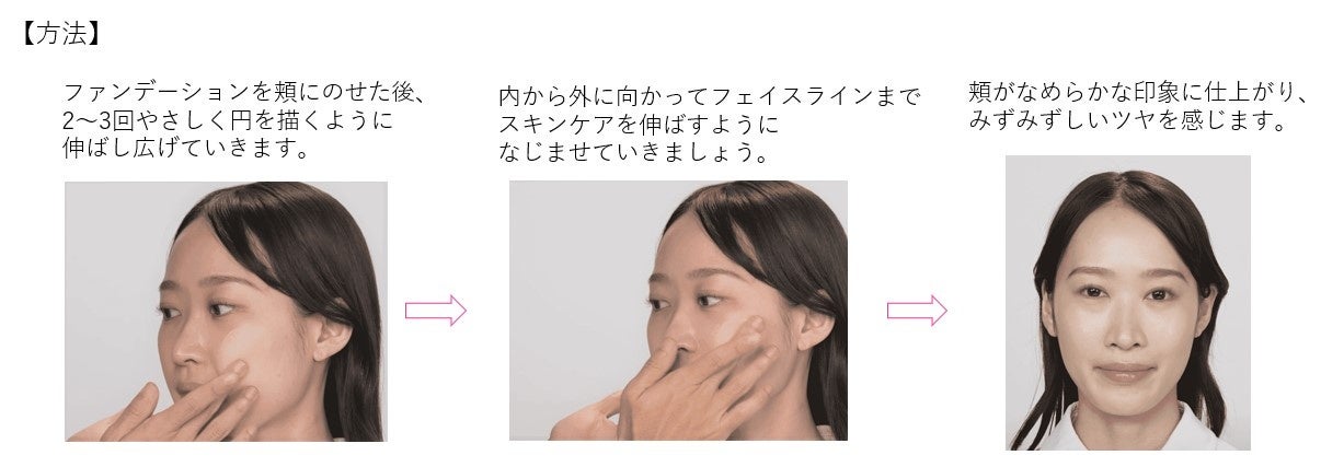 肌に凹凸があると影ができやすくなりますが、なめらかな印象に仕上がることで、よりツヤを感じられます。目周りが暗くなると、頬のなめらかさが損なわれて見えてしまうことも考えられますので、目の下などカバーしたい場所には重ね付けがおすすめです。