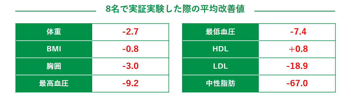 2021年3月から7月にかけてのグループ従業員を対象とした実証実験では、4週間の生活により、全被験者で一部項目に改善が見られました。