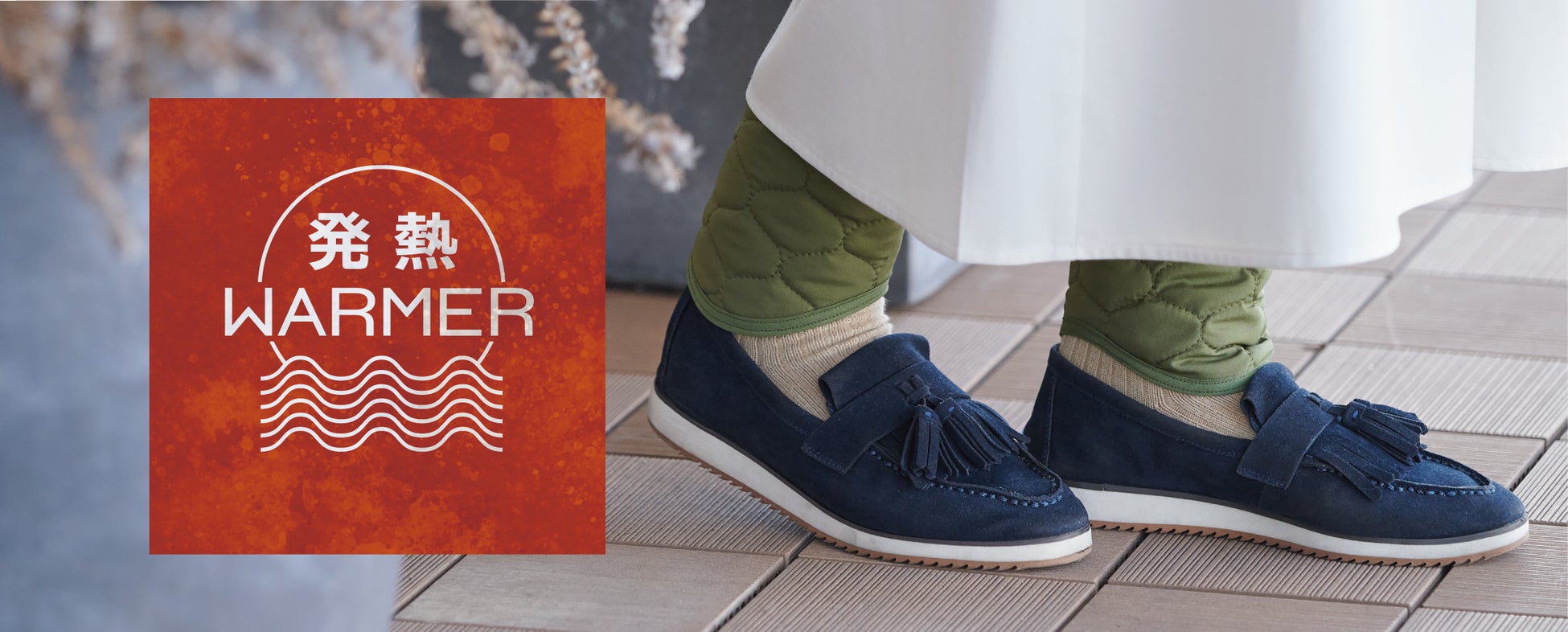 様々な服装に合わせられる秋冬おすすめのカラー展開で、面ファスナーで簡単に着脱できるため外出時やオフィスでもサッと巻くことができ、足くびの寒さ対策におすすめの商品です。
