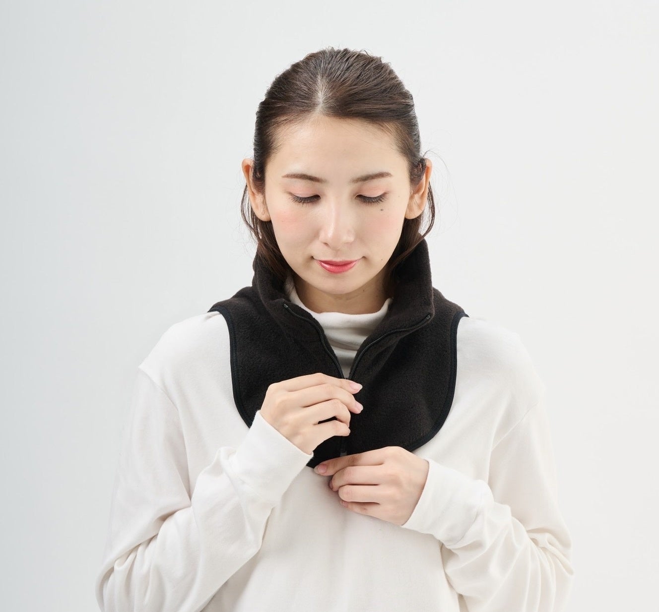 3. フルオープンタイプのネックウォーマーなので、外出時にさっと羽織ってもヘアセットやメイクが崩れにくい