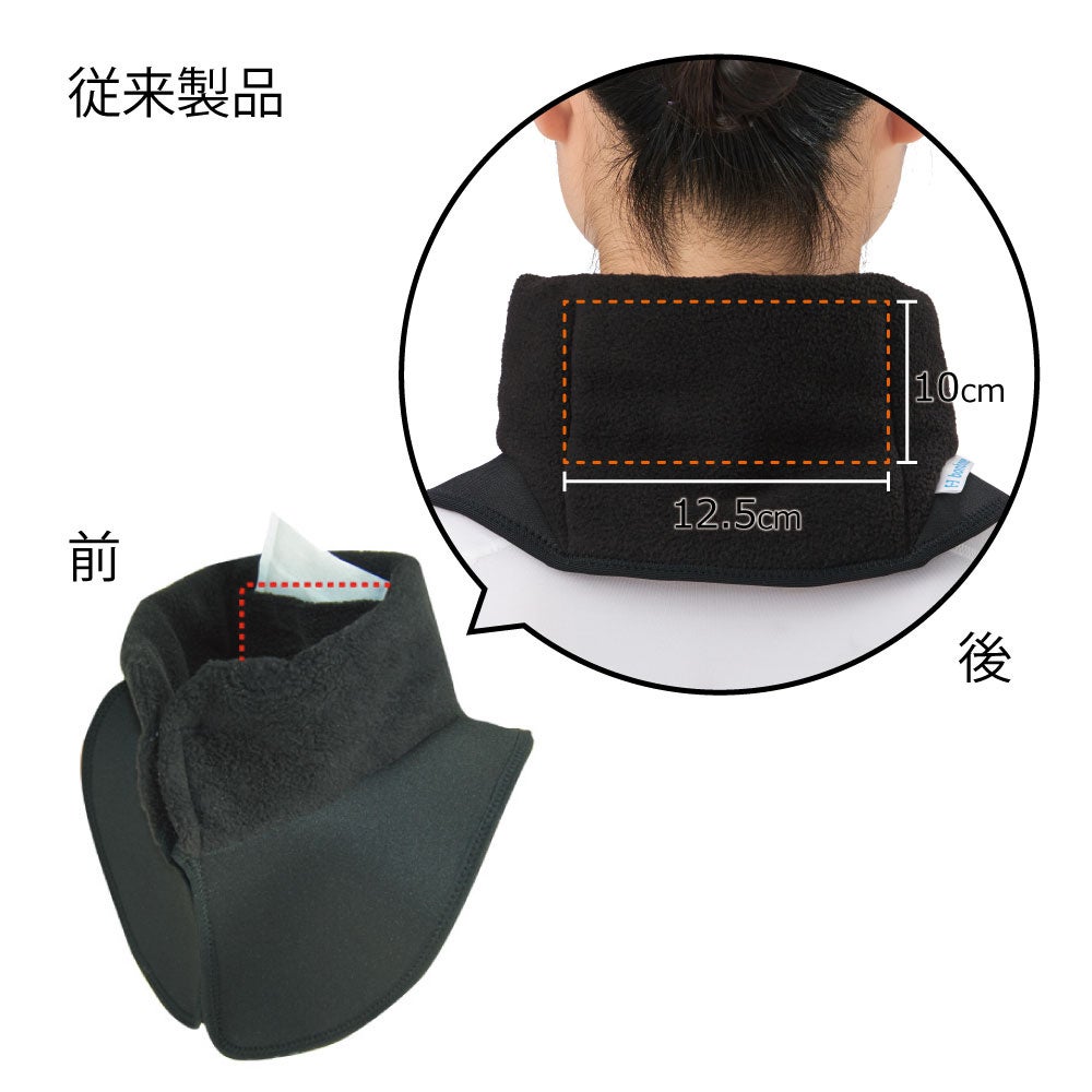 2. 背中は従来型から+22㎝のロングタイプで、寒さで縮こまった首や肩の温活が手軽に行える