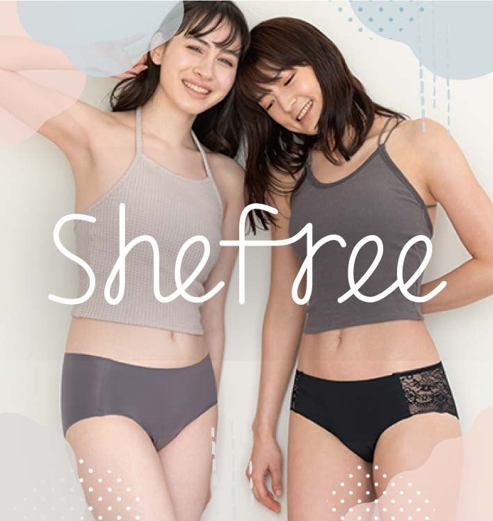 ブランド名「Shefree/シーフリー」は、すべての女性の意味を込めた(She)に、自由(free)を組み合わせた造語です。女性がサニタリー期であっても自分らしく自由でいられるようにという願いを込め、またこのブランドがその一助となることを願ってネーミングしました。