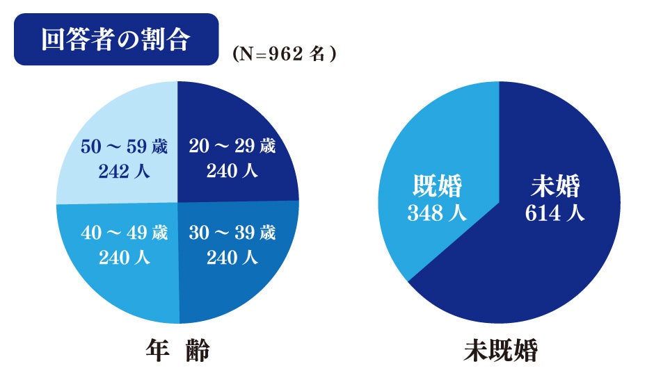 調査対象者:首都圏(一都七県:東京都、茨城県、栃木県、群馬県、埼玉県、千葉県、神奈川県、山梨県)在住の男性962名(内訳:20代240名、30代240名、40代240名、50代242名)