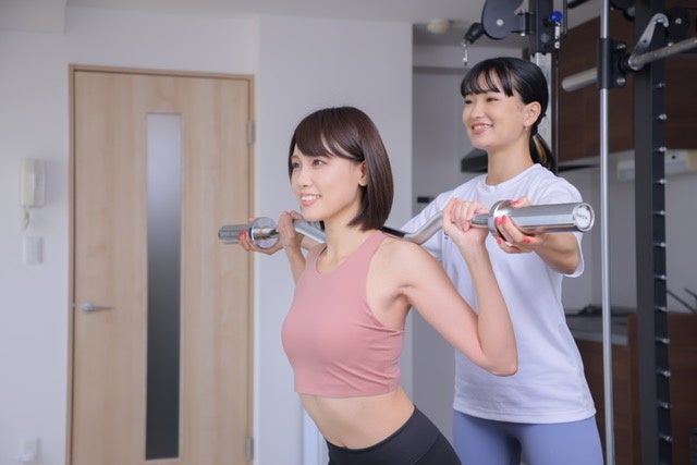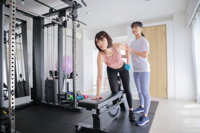 シェイプアップの風景軽重量や自重でのトレーニングを中心とし、身体の部分で気になるところやメリハリをつけたいという部位を中心にトレーニングを行います。