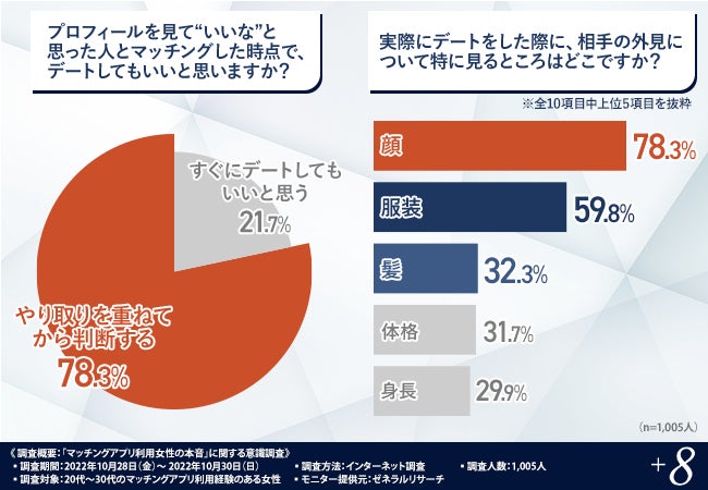 今回、「マッチングアプリ利用女性の本音」に関する調査を実施しました。株式会社プラスエイトは、国内実績No,1のメンズ眉毛スタイリング専門サロン『+8プラスエイト』(https://www.plus8.bz/)を運営しています。